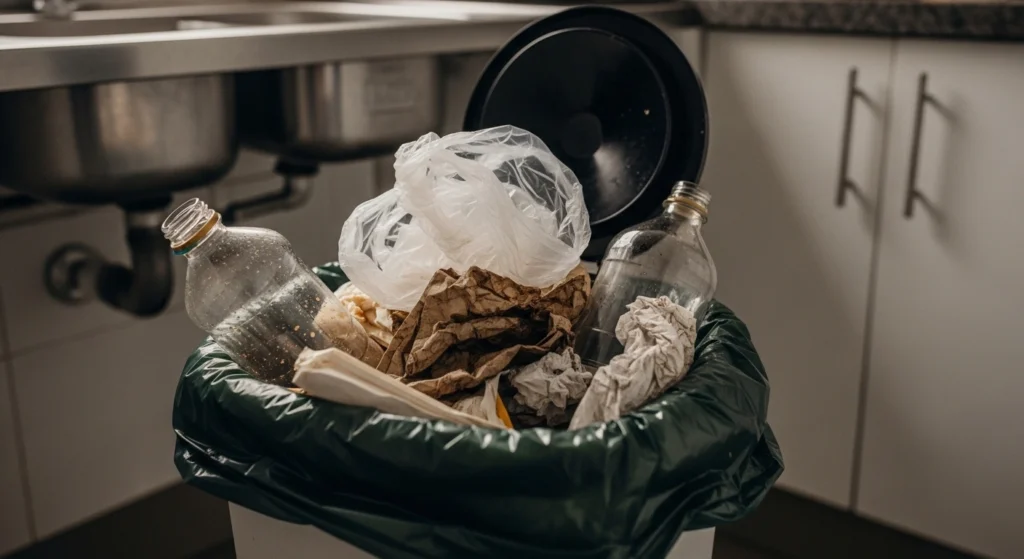 Se você usa saquinhos de lixo pequenos no banheiro, mantenha um descarte separado. Isso evita que um único hábito estrague um saco inteiro de material aproveitável.