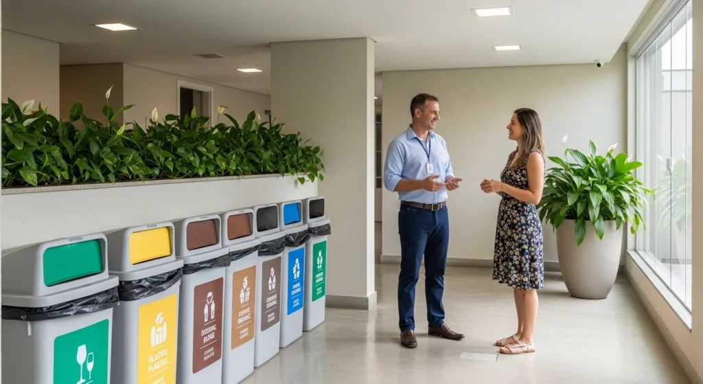 Se o condomínio não tem fluxo claro, a administração pode orientar pontos de descarte, horários e regras internas. O objetivo é reduzir conflito e evitar que o lixo vire problema coletivo.