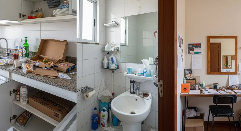 Alguns problemas merecem orientação profissional ou do serviço local: presença recorrente de pragas, vazamentos, mofo perto de áreas de armazenamento ou cheiro forte persistente.