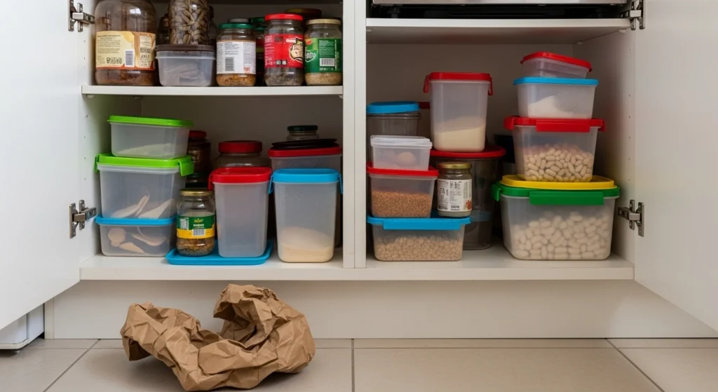 Se o local onde você guarda embalagens tem histórico de baratas, formigas, ratos ou mofo recorrente, vale priorizar uma solução de armazenamento mais segura. Em alguns casos, reduzir volume é a medida mais eficaz.